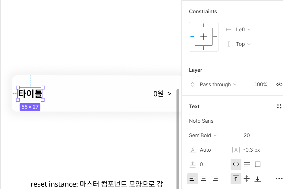 reset instance: 마스터 컴포넌트 모양으로 감