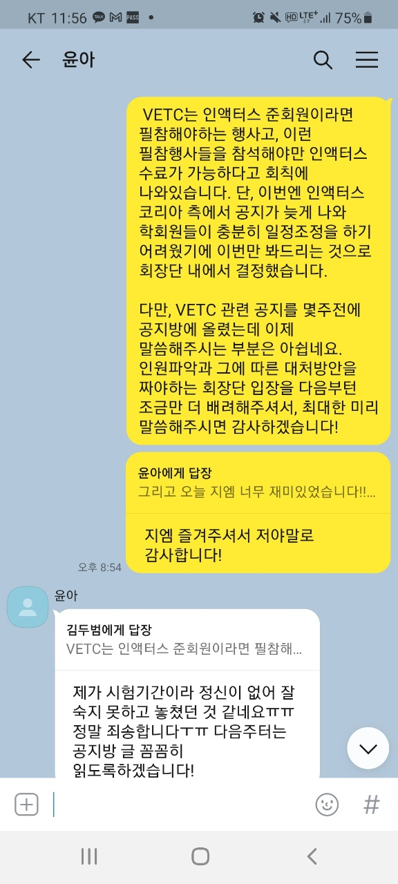 나름 시험기간 부터 GM 공지까지 여러번 공지를 했음에도, 지속적으로 불참해야된다는 연락을 받은.. 처음 인원들을 유도리 있게 넘어가니, 그다음 인원들도 유도리 있게 넘어갈 수 밖에 없었다.( 실은 이번 vetc 같은 경우는 유도리 있게 넘어갈 수 밖에 없었던듯. 벌금을 매기기도 애매하고.. 마음같아선 아티클이라도 읽고 학회원에게 공유 같은 벌칙을 주고 싶었는데, 부회장들이 하지 말자고하니 뭐..! 이럴땐 져주기도 하고, 내 의견을 굽히는게 더 나을 거 같다는 생각에 그 의견은 접었다.(할아버지 말이 생각나네.. 져줄 줄 도 알아야 한다)