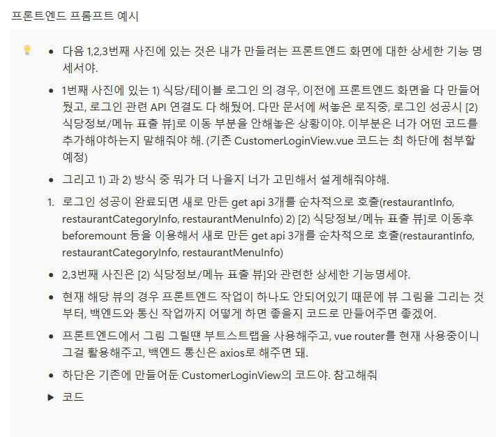 아래는 프롬프트와, 프론트엔드 코드 예시다.