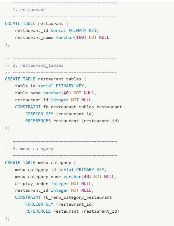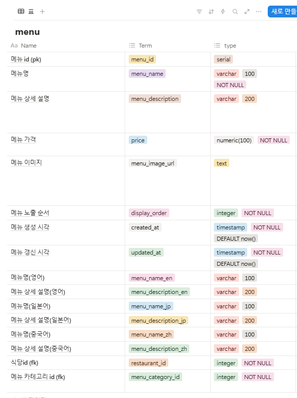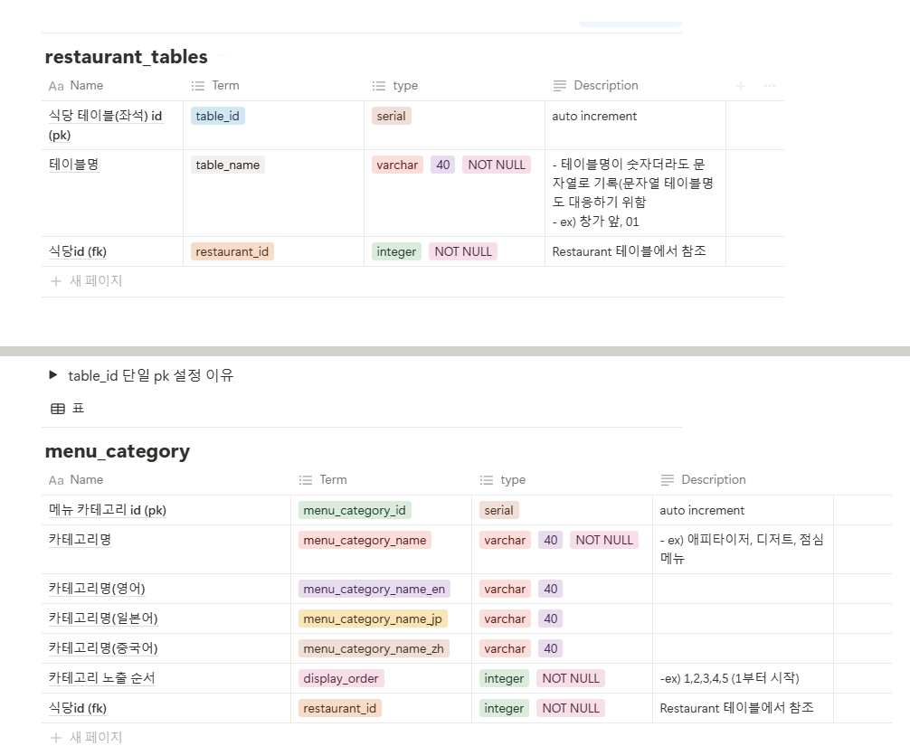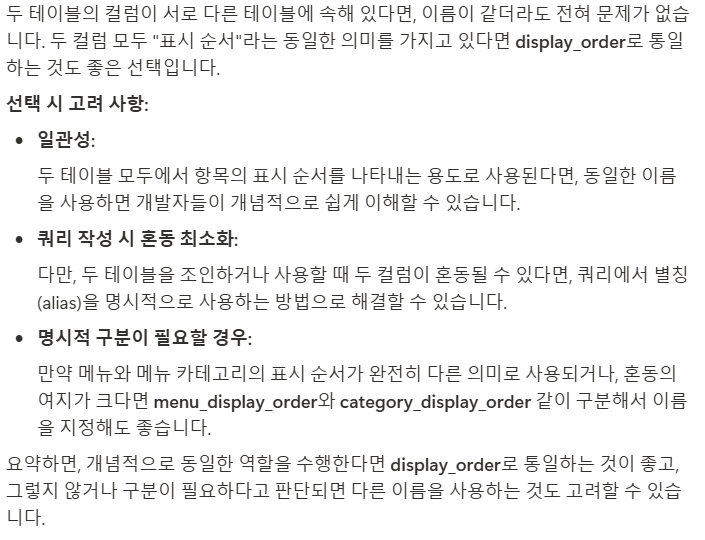 - menu 테이블에도 display_order 컬럼이 있는데, category 테이블에도 동일한 컬럼명 써도 되나?