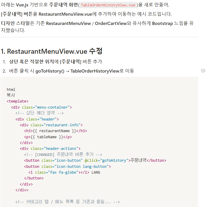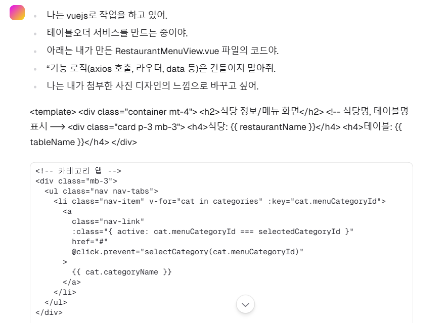 프론트엔드 개발도 백엔드 개발과 거의 유사하게 GPT를 활용해서 진행했다.