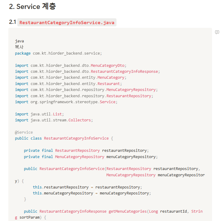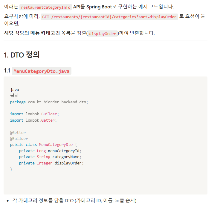 이를 바탕으로, gpt는 내 db 구조, 전체 기능에 대한 이해 등을 바탕으로 MVC 구조에 맞게 요소별로 하나씩 코드를 전달해 줬다. (DTO부터, Service, Repository, Controller, Entity 등)