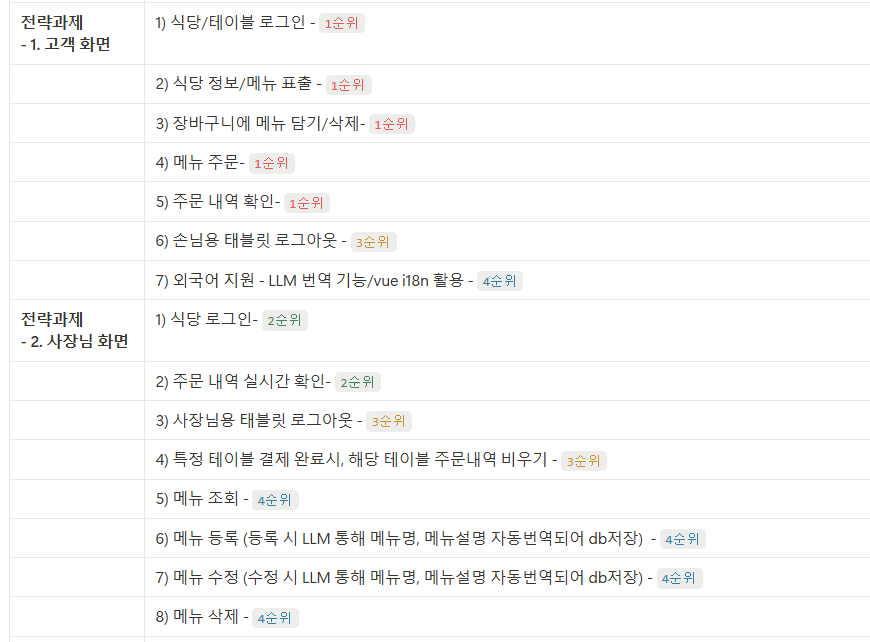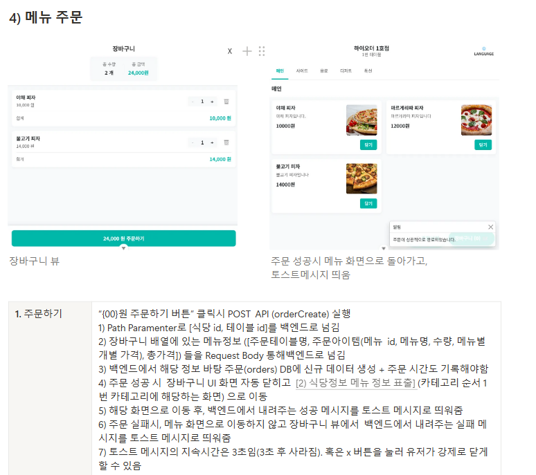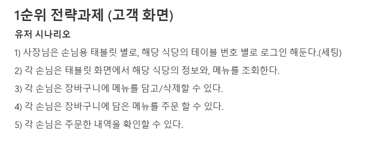 - 당시 나는 테이블오더가 출시된 지 1달 차 이후부터 팀에 합류했었기에 기본적인 기능들은 이미 출시된 이후 팀에 합류했었다. 그에 따라 테이블오더의 기본 기능에 대한 기획/개발 등을 해보고 싶은 니즈를 가지고 있었다.