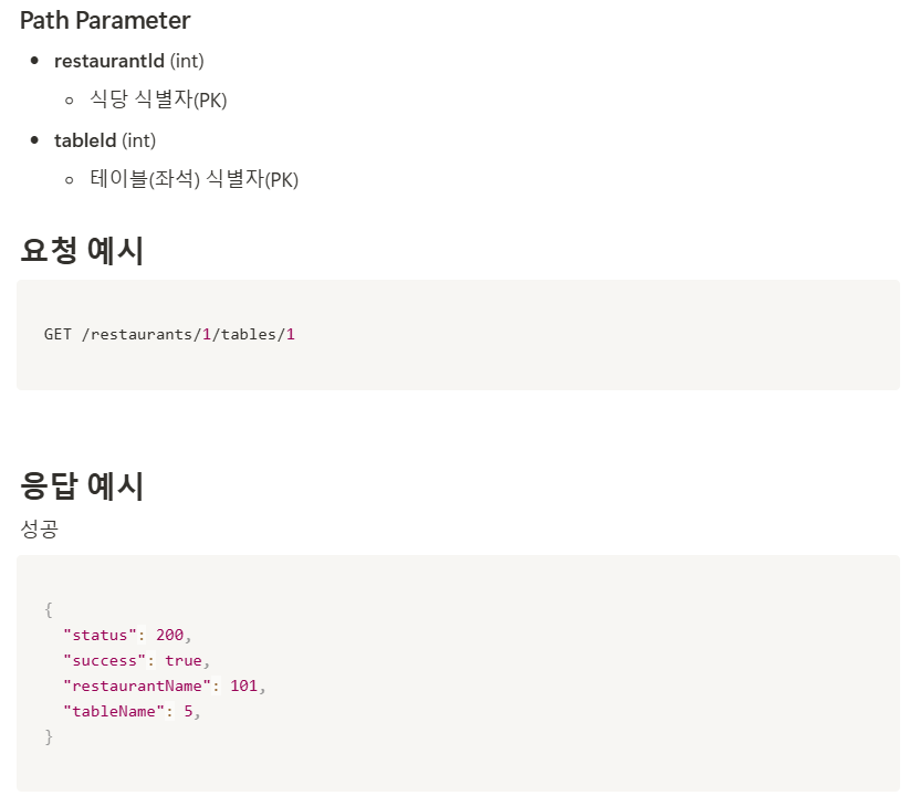 (ex. 고객 화면에서 유저가 "주문" 버튼을 눌렀을 때 orderCreate API를 호출하고, 프론트에선 Path parameter와, Request body로 각각 어떤 요소들을 넘긴다 등)