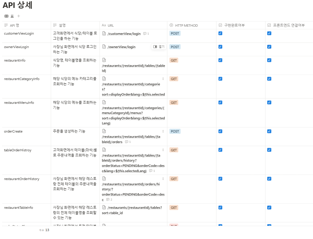 ERD, API 명세서까지 나온 이후에는 기능 명세에 디테일한 정보들을 추가해 줬다.