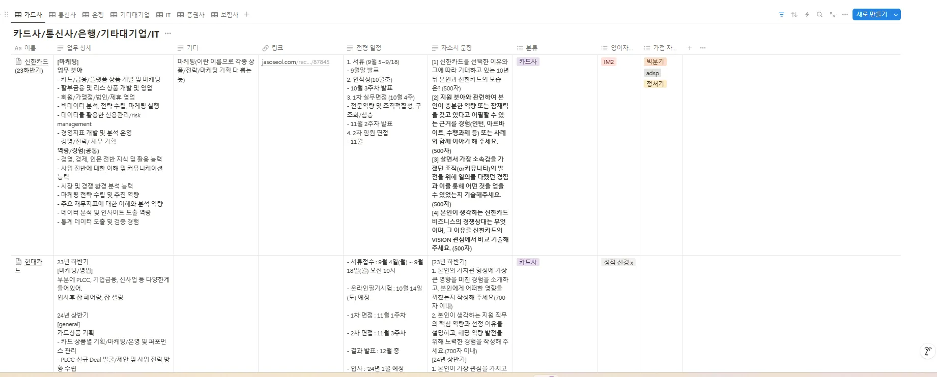- 또한 이 부분 진행 시, 대략 내가 해당 시즌에 몇 개 정도 서류를 낼 수 있을지 감이 잡히기도 함