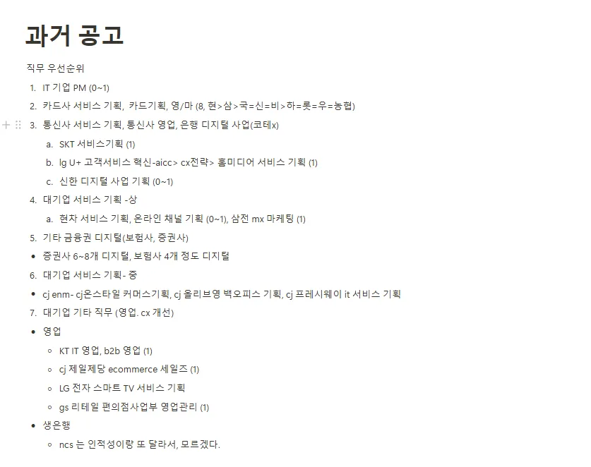 그 뒤, 내가 이번 시즌 어떤 우선순위로 직무/산업을 지원할지를 정리해 봤다.
