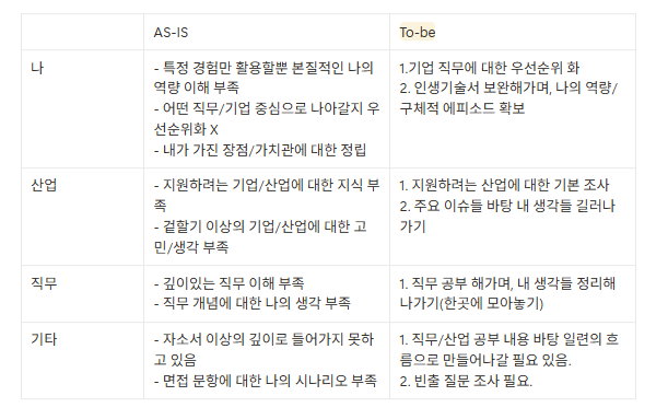 - 추후, 기업 간 일정이 겹쳐 포기해야 하는 상황이나 어느 기업에 인풋을 더 들일지 판단하는데 도움이 되었음