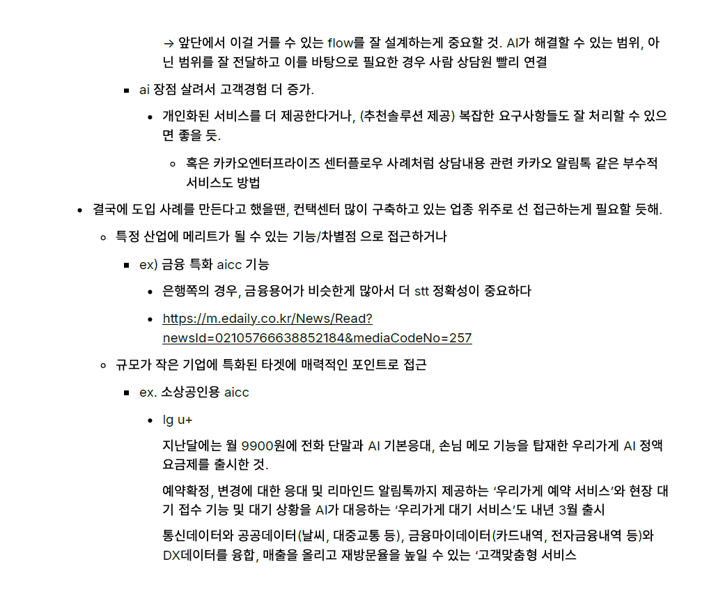 - 그 과정에서 지원하려는 기업(ex. 통신사)이 AICC 사업을 하고 있다면 그 회사의 상품에 대한 공부도 자연스럽게 될 거다.