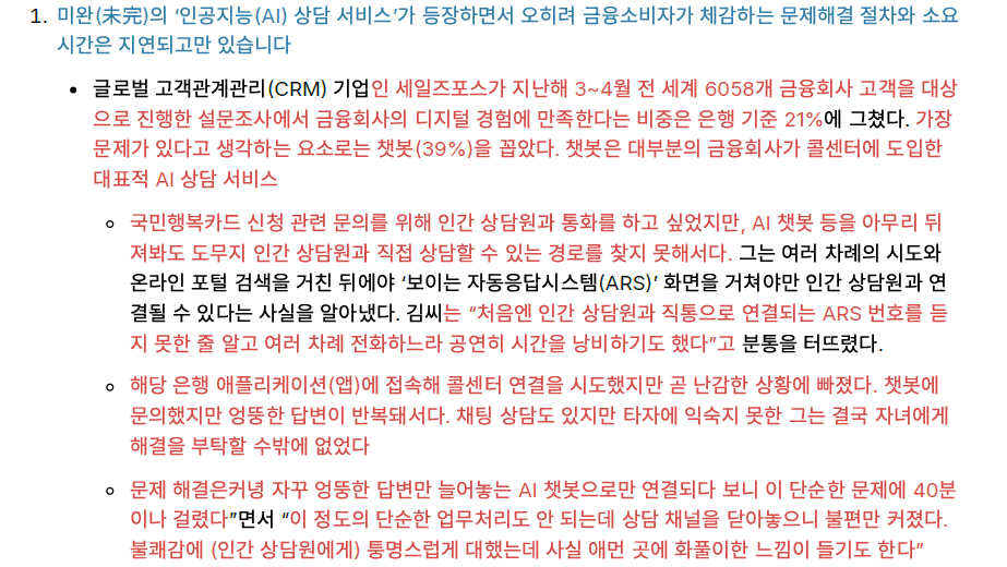 실제로 기사에서 말한 것처럼 AI상담을 이용하는 걸 소비자들이 많이 불편함을 느끼나?