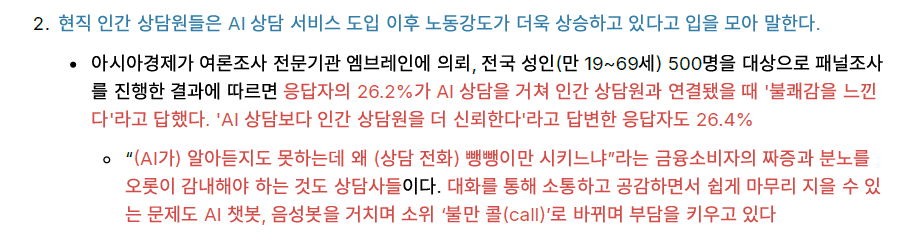 예를 들어, 아래와 같은 AI 고객센터 도입 후 편리함보다, 오히려 상담사와 고객들의 불만이 쌓인다는 기사가 있다고 해보자