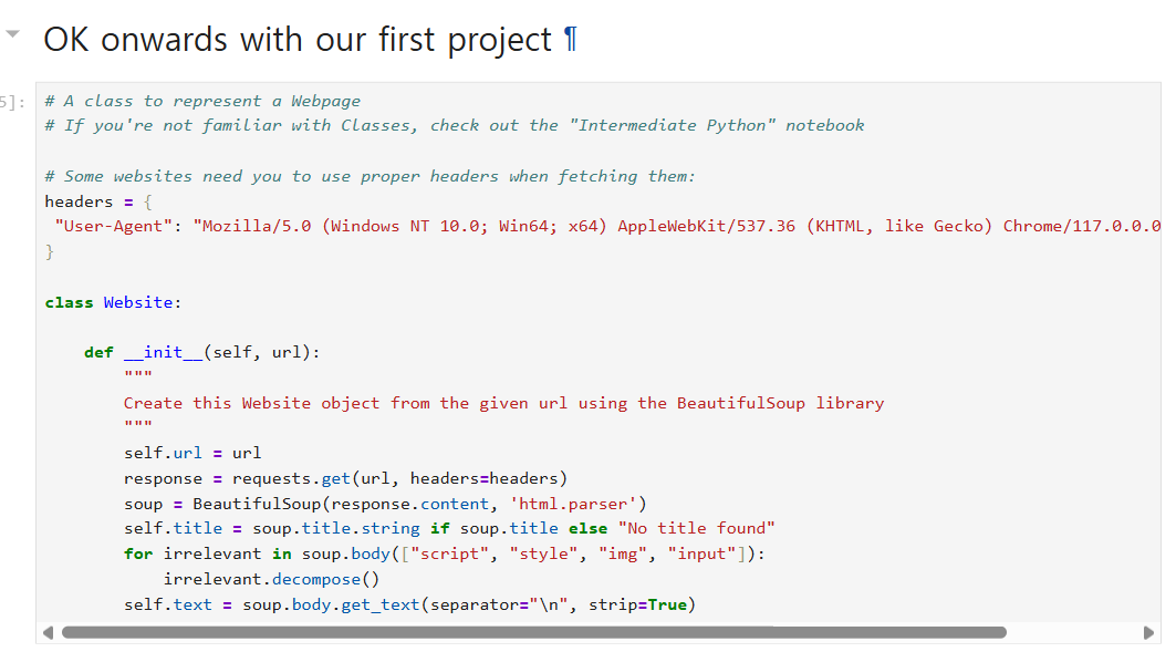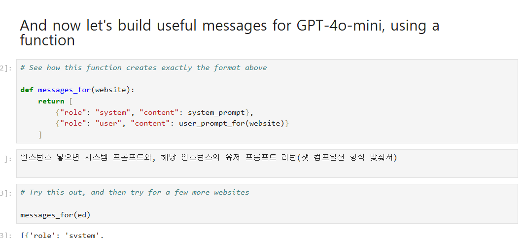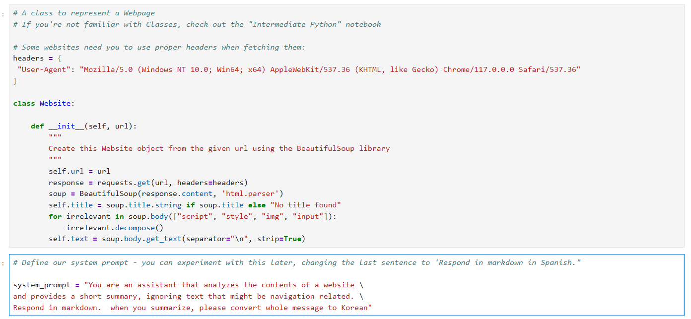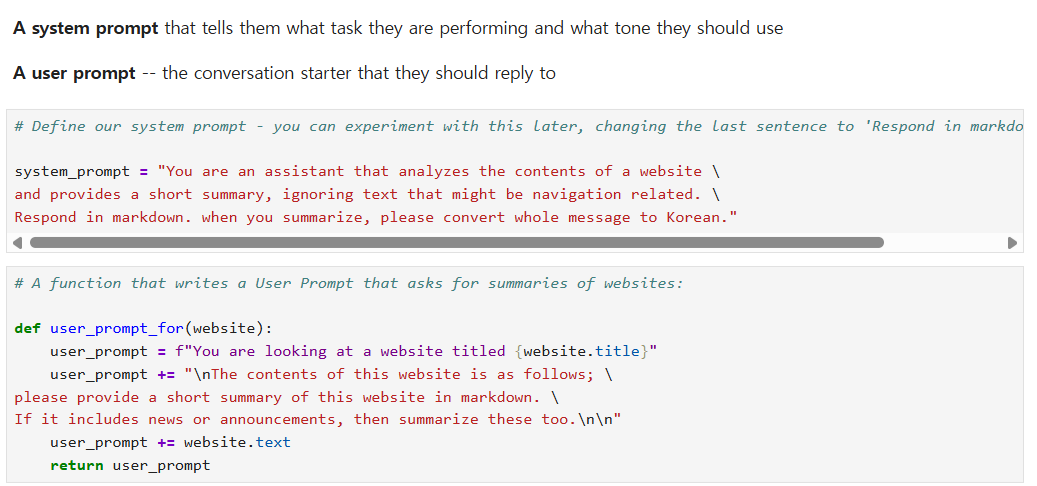 - user prompt의 경우 앞서 만든 웹사이트 클래스를 활용