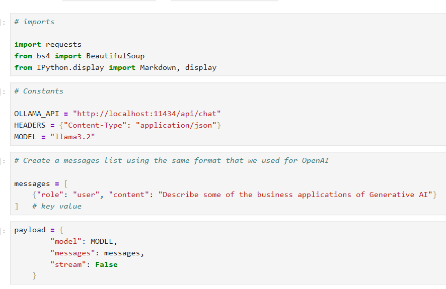 첫 번째로 웹사이트 요약 기능 구현 전 Ollama를 활용을 위한 기본 방법을 실행해 봤다.