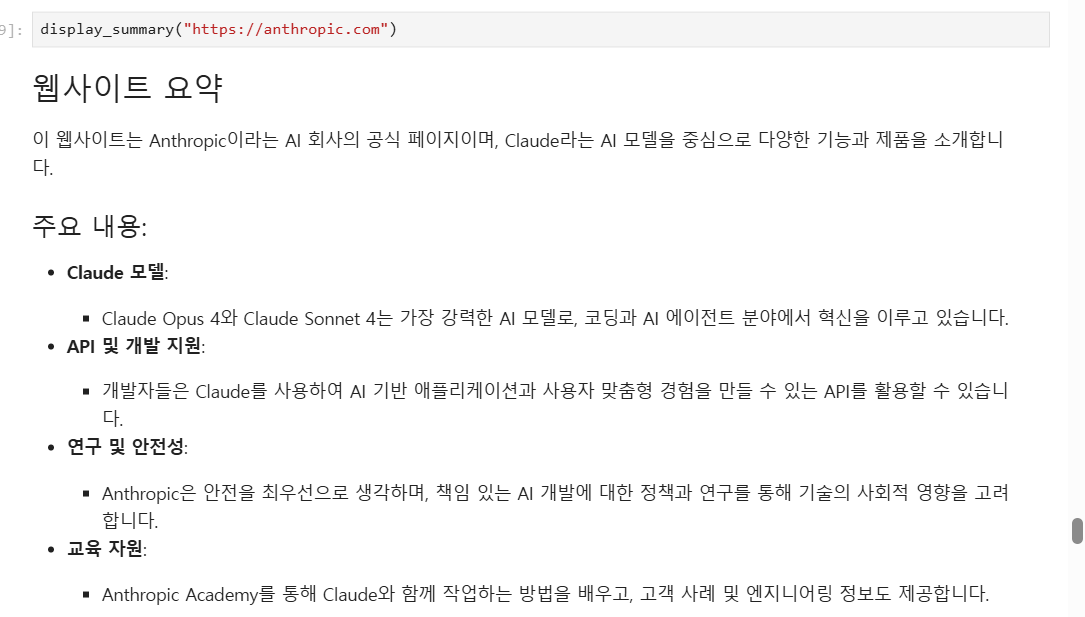 - 특정 웹사이트 url을 변수로 넣어 요약 기능 실행