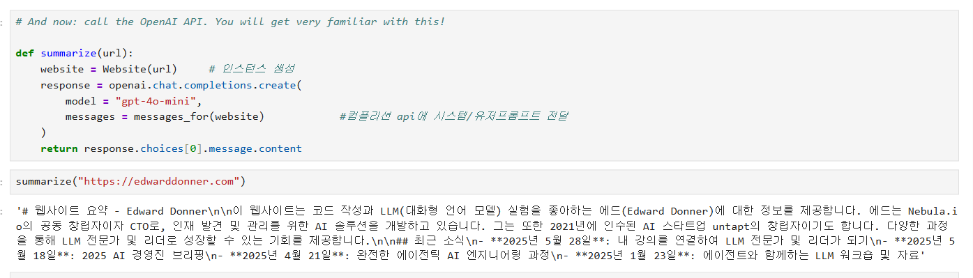 - 특정 웹사이트 url을 변수로 넣어 요약 기능 실행