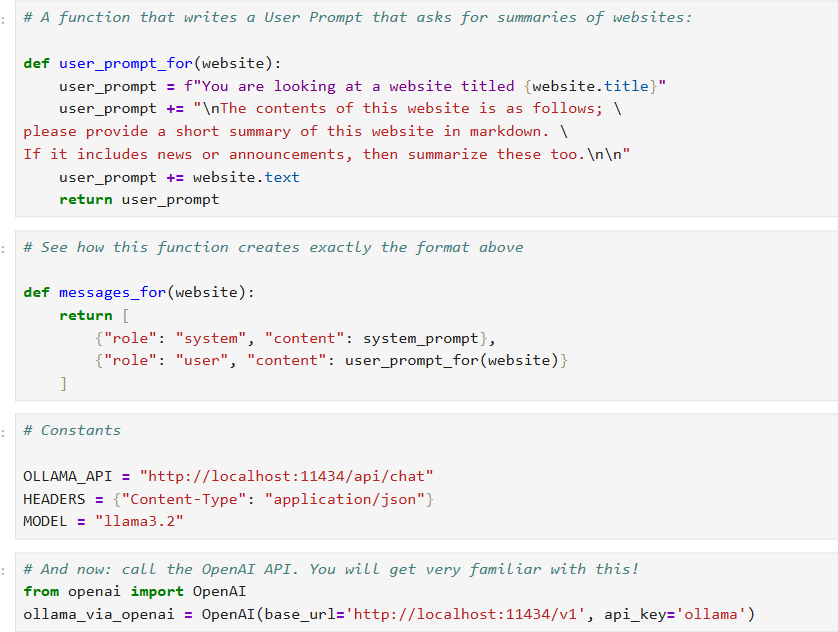 그 뒤엔 Ollama Local LLM을 활용해서 DAY 1에서 만들었던 웹사이트 요약 기능을 구현해 봤다.