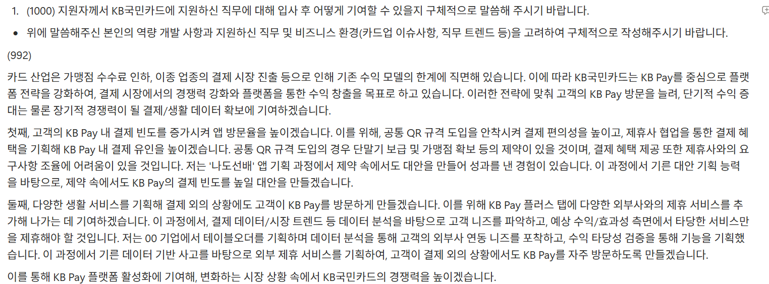 - 내가 기여할 수 있는 포인트까지 작성해야 했기 때문에, 타 문항에서 작성하게 될 내 경험을 간략하게 언급 (직무 역량 중심으로)