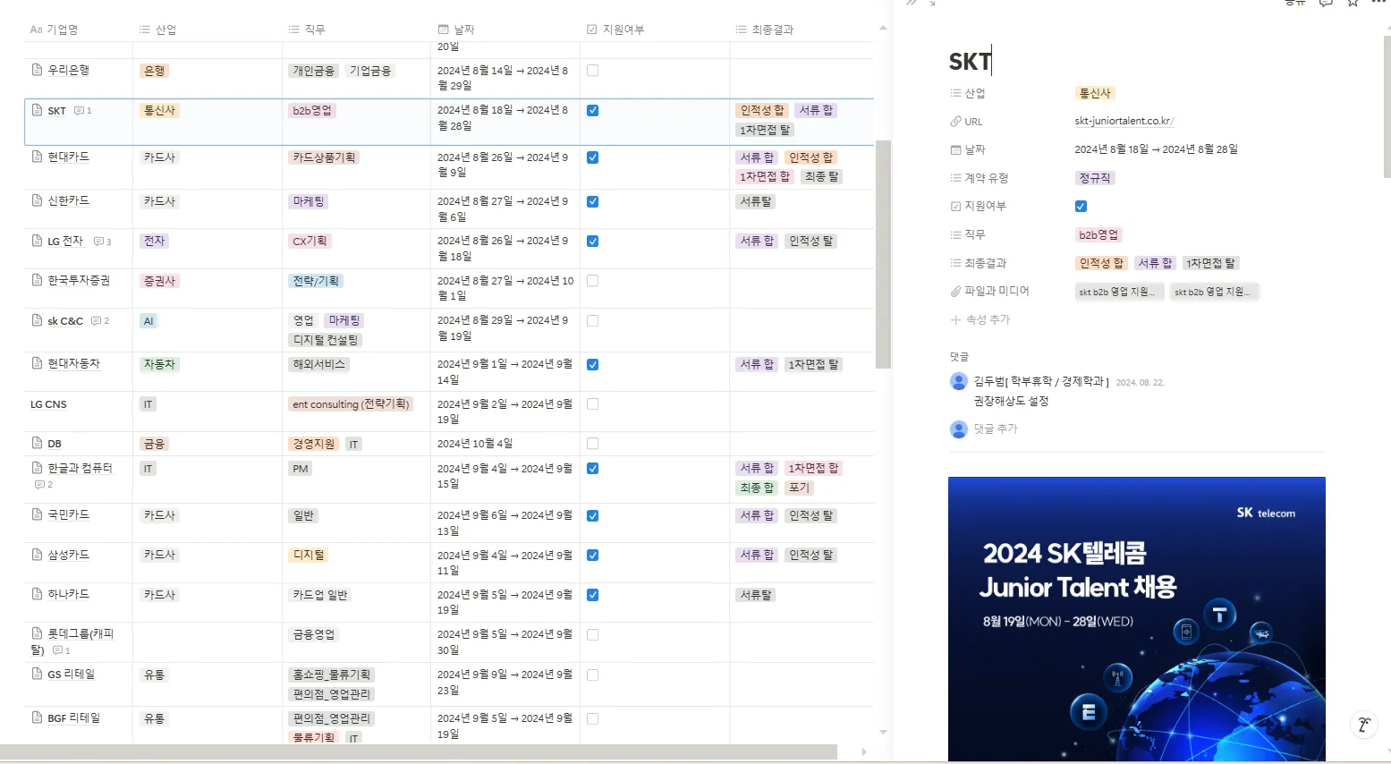 지원 진행상황등을 지속적으로 기록해나가며 트래킹 함