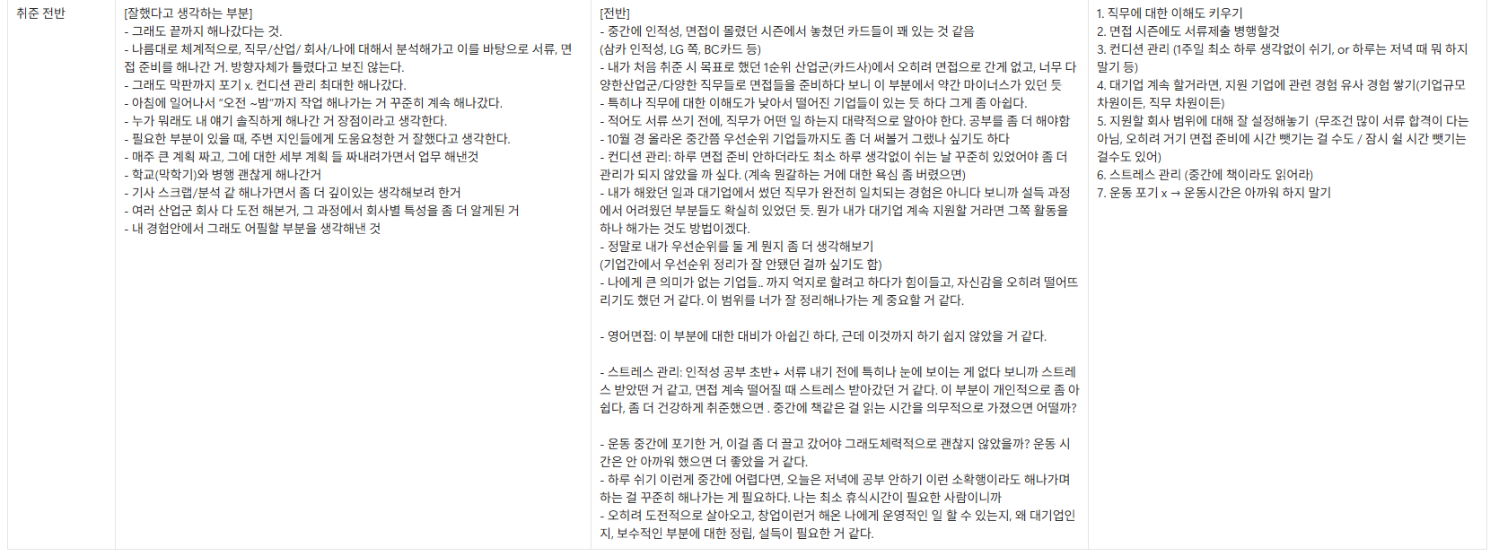 1) 이 사람은 취준에 대한 회고를 이런 방식으로 해나갔네